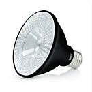 L’ampoule LED E27 PAR 30 Pollux avec un boîtier noir ne consomme que 7,5 W, et a un rendement lumineux de 550 lumens (remplace 55 W).