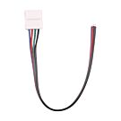 Connecteur de ruban LED RGB avec fil ± 15 cm pour les rubans LED RGB 10 mm, 5050 SMD, non étanches (donc pas pour les rubans LED monochromes!). Avec ce connecteur, vous pouvez connecter des parties coupées du ruban LED sans fil à un contrôleur, sans soudure. Tous nos rubans LED de 5 mètres sont livrés de manière standard avec un fil aux deux extrémités du ruban. Attention ! Ce connecteur RGB ne convient que pour nos rubans LED RGB non étanches 12V et 24V, 5050 SMD.