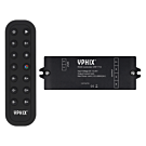 Le contrôleur RGB YPHIX CRF-T12 est un contrôleur multifonctionnel compact. En plus des 10 couleurs de base, vous pouvez créer une infinité de couleurs et moduler l'éclairage en 8 étapes. Vous pouvez également utiliser l'un des dix programmes de couleur. La télécommande retient la dernière couleur choisie ou le dernier programme utilisé après la remise sous tension du contrôleur et a une portée d'environ 25 mètres. Ce contrôleur est un choix idéal si vous souhaitez contrôler une zone sur une plus grande distance, si vous voulez utiliser plusieurs programmes de couleur et/ou créer une infinité de couleurs. Si vous souhaitez contrôler plusieurs zones, jetez un coup d'oeil à notre contrôleur RGB(W) YPHIX, CRF-T24.